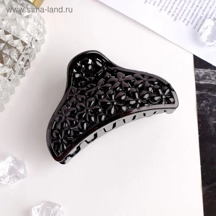 Крабик для волос «Классик», цветочки, 8.5 см, чёрный