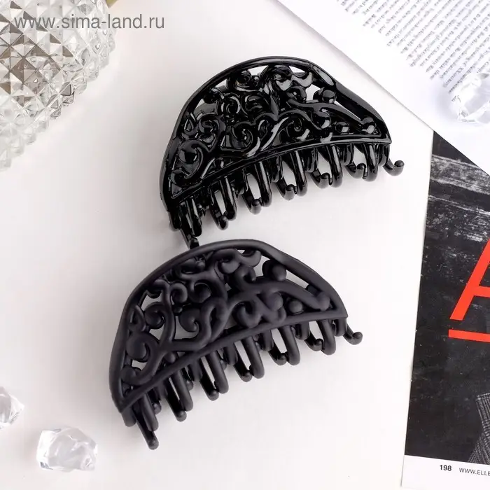 Крабик для волос «Чёрный бархат», вензеля, 8 см, МИКС