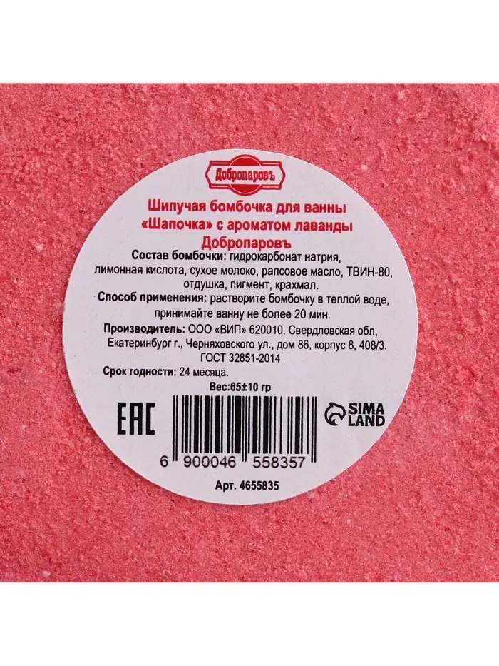 Бомбочка для ванны "Шапочка" с ароматом лаванды, красная, 65 гр