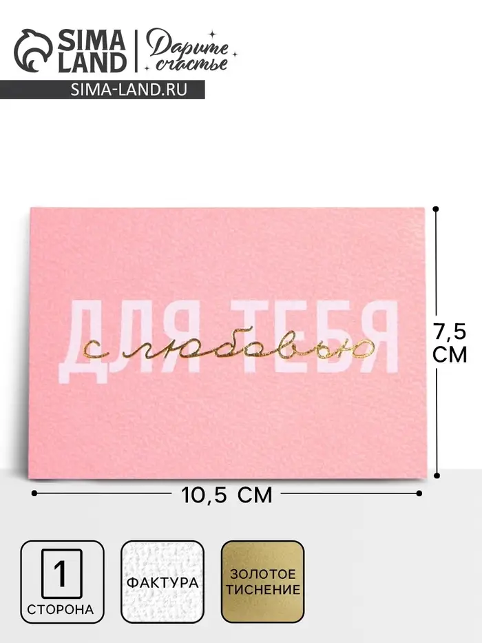 Открытка на акварельном картоне с тиснением «Для тебя с любовью», 10.5×7.5 см