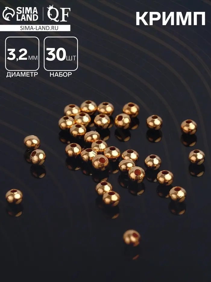 Кримп (зажимная бусина) СМ-370, 3,2 мм, цвет золото — незаменимый элемент для создания качественных украшений. В наборе 30 штук, что позволяет использовать их в различных проектах для рукоделия. Эти зажимные бусины идеально подходят для фиксации концов нитей, шнуров и проволоки, при этом придают украшениям изысканный и аккуратный вид. Золотой цвет придает изделию элегантность, делая его подходящим для самых разных стилей украшений, от классических до более современных.