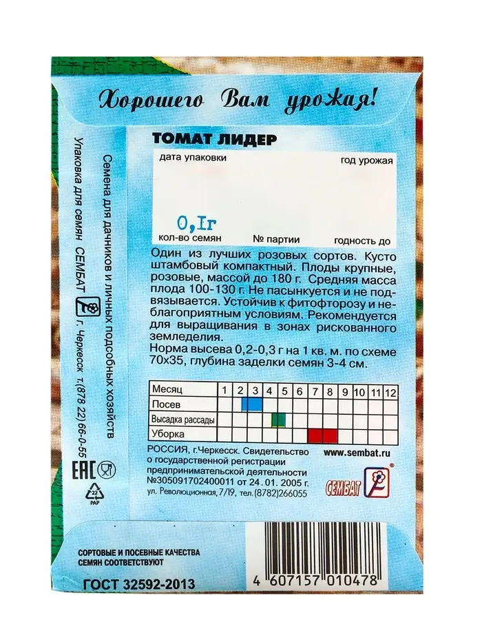 Семена Томат "Лидер" розовый, 0,1 г