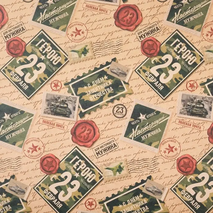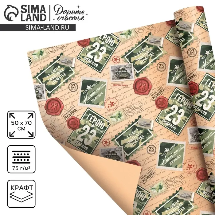 Бумага упаковочная крафтовая «Герою с 23 февраля», 50 х 70 см