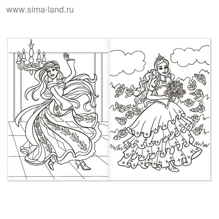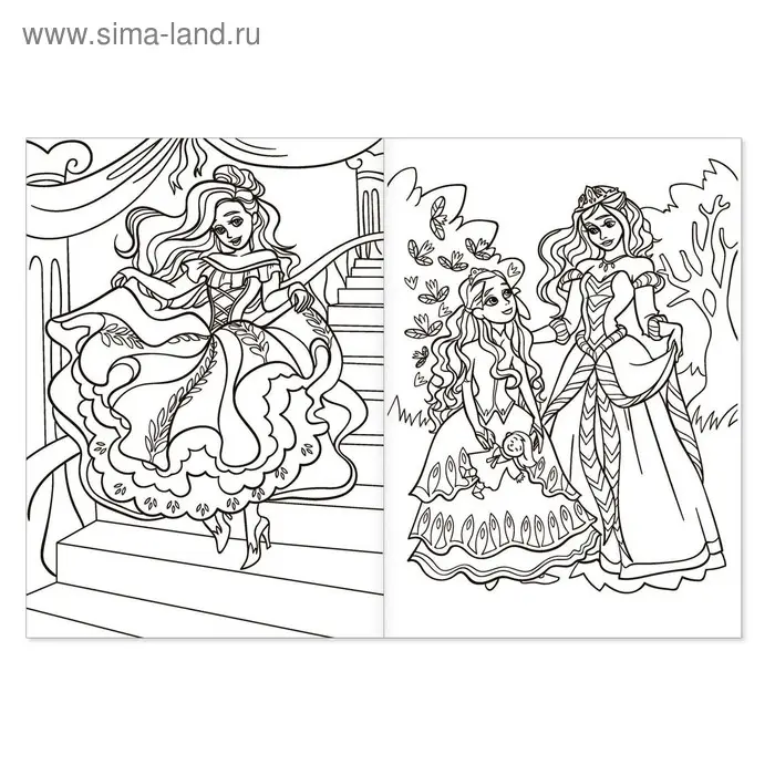 Раскраска для девочек «Сказочные принцессы», 16 стр., формат А4