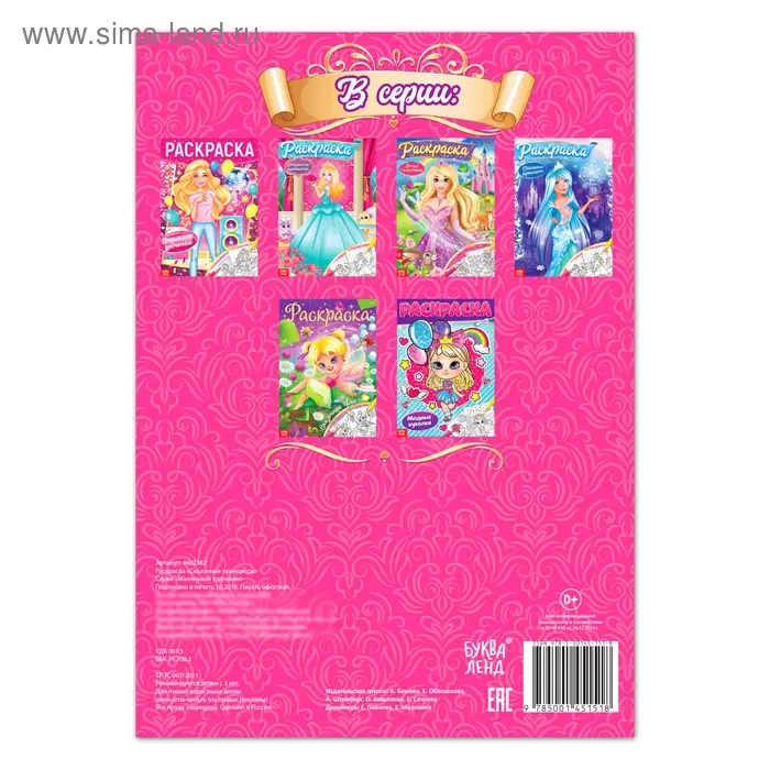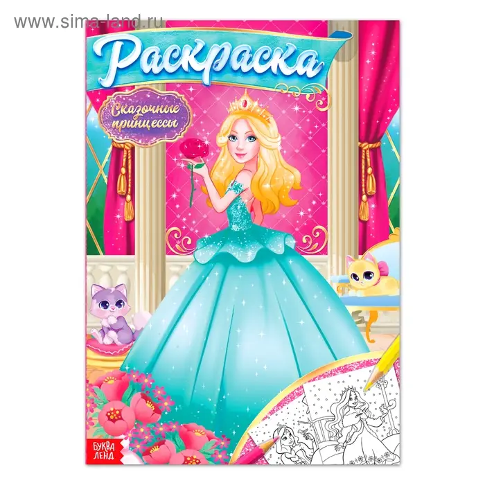 Раскраска «Сказочная принцесса» — книга с контурными картинками волшебного королевства, царевны в прекрасных нарядах, замка. Малышка сможет их раскрасить карандашами, красками или фломастерами. Страницы и обложка выполнены из бумаги.