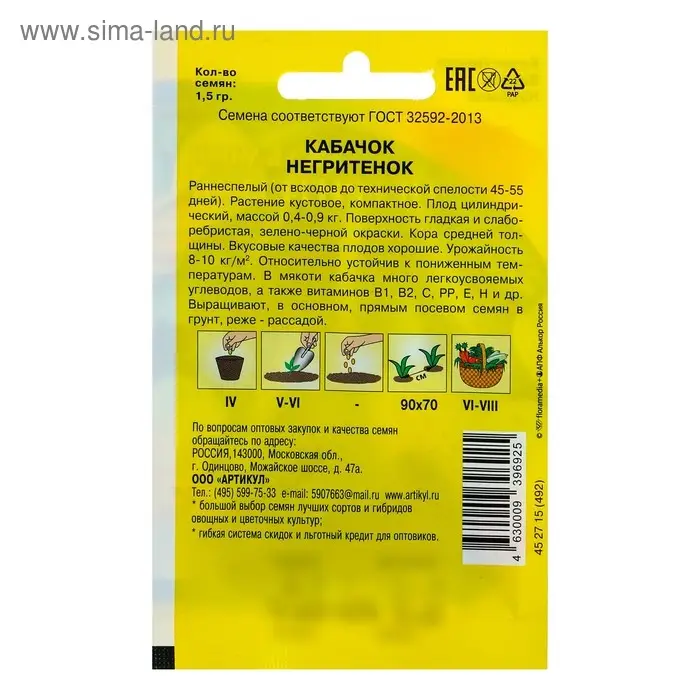 Семена Кабачок "Негритенок" раннеспелый, 1,5 г