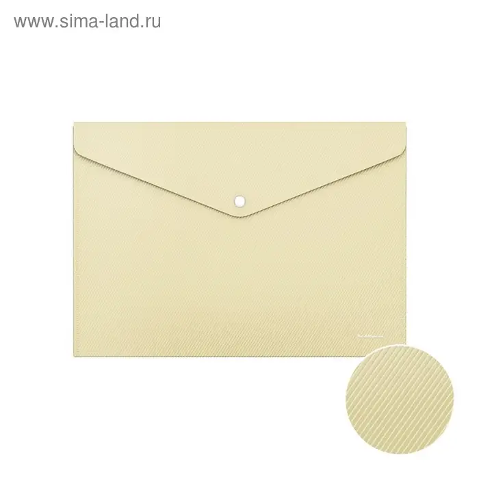 Папка-конверт на кнопке формата А4 из высококачественного непрозрачного пластика с текстурой поверхности "диагональ", на которой не видно отпечатков пальцев и мелких царапин.