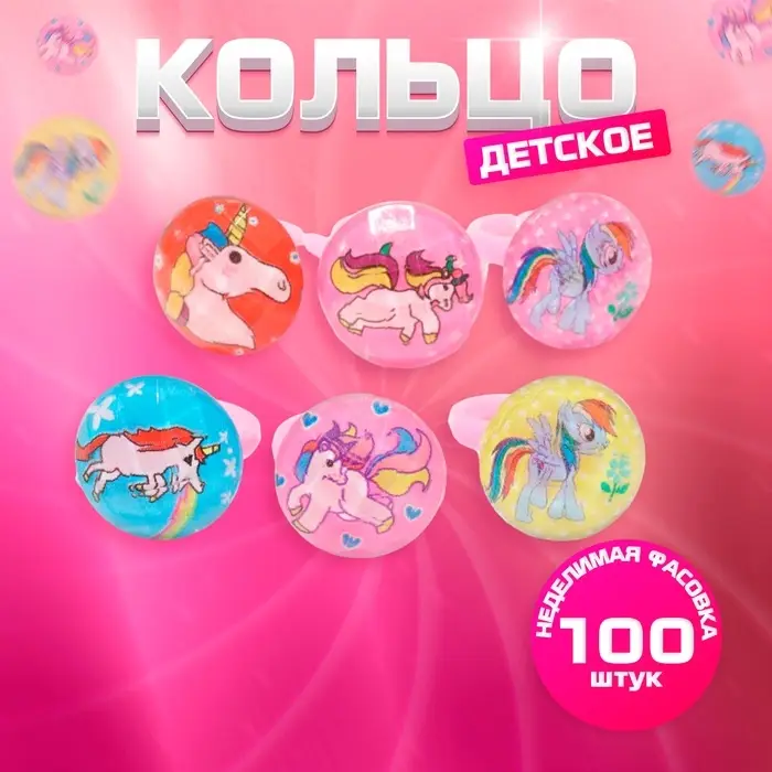 Кольцо детское Выбражулька «Единороги», рисунок МИКС, МИКС