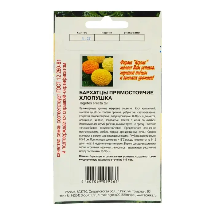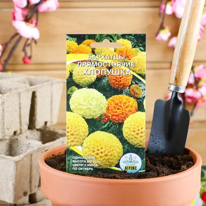 Семена цветов Бархатцы прямостоячие "Хлопушка", 0,2 г