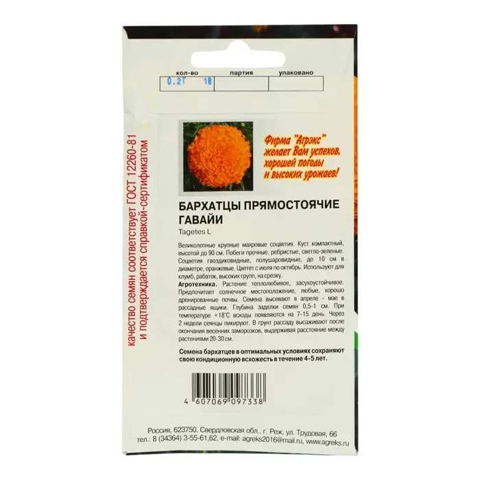 Семена цветов Бархатцы прямостоячие "Гавайи", 0,2 г