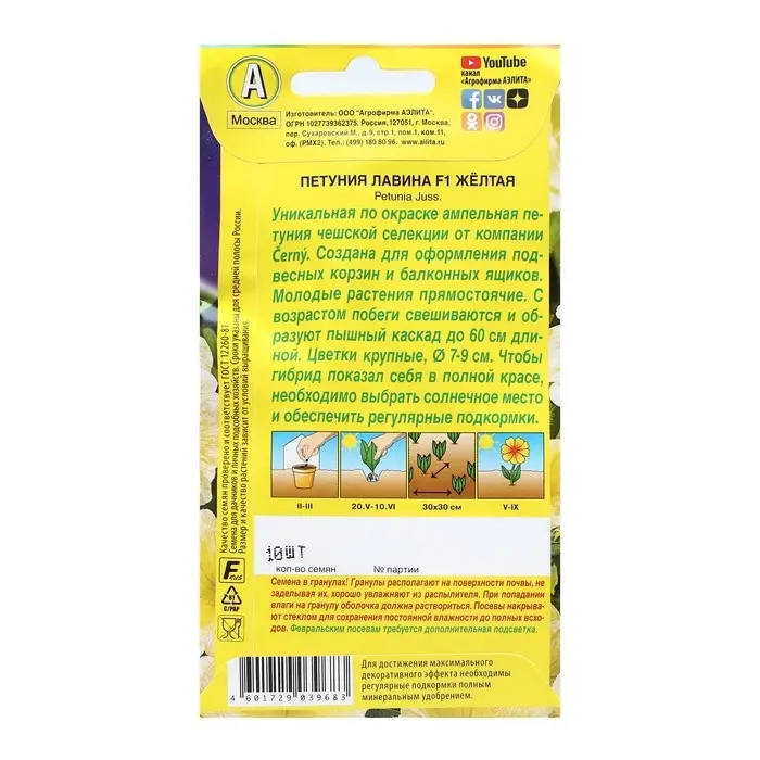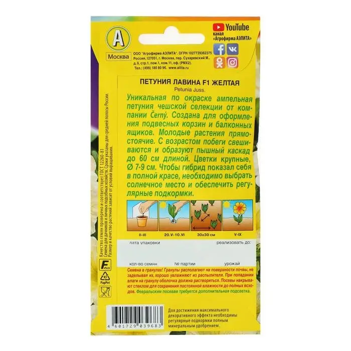 Семена Петуния Лавина F1 желтая крупноцветковая ампельная, 7 шт