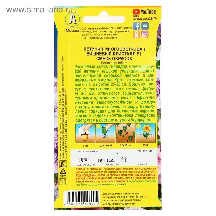 Семена Петуния Вишневый кристалл F1 многоцветковая, смесь окрасок, 10 шт