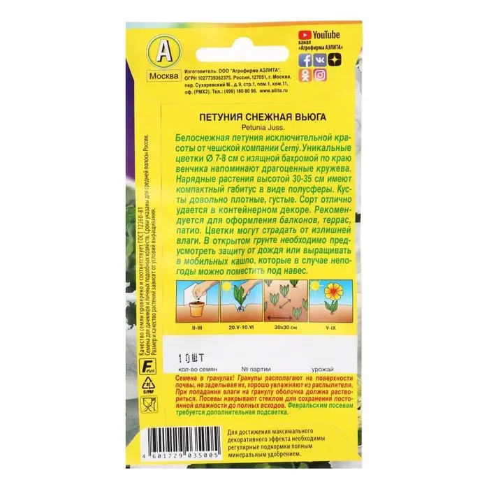 Семена Петуния Снежная вьюга крупноцветковая бахромчатая, 10 шт