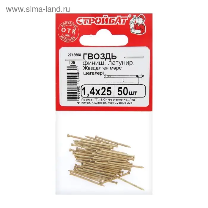 Гвозди СТРОЙБАТ, финишные, ГОСТ 7811-7035, латунированные, 1.4×25 мм, 50 шт.