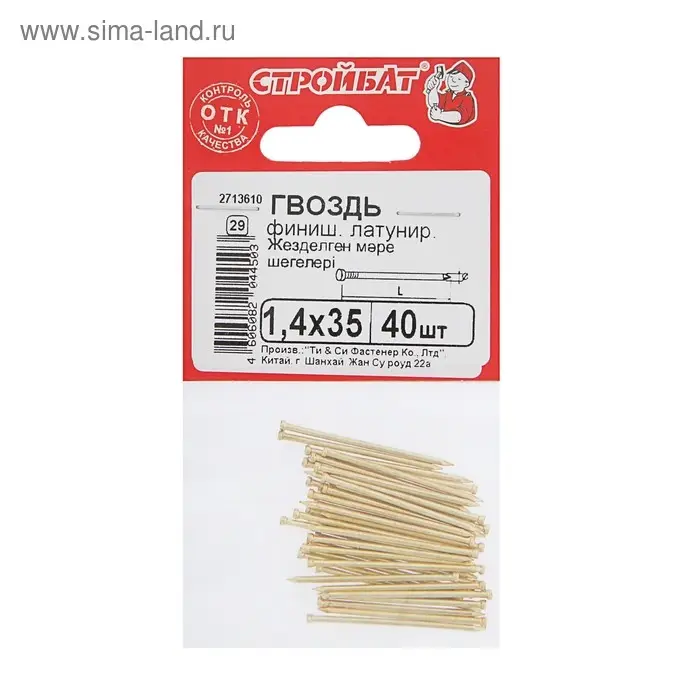 Гвозди СТРОЙБАТ, финишные, ГОСТ 7811-7035, латунированные, 1.4×35 мм, 40 шт.