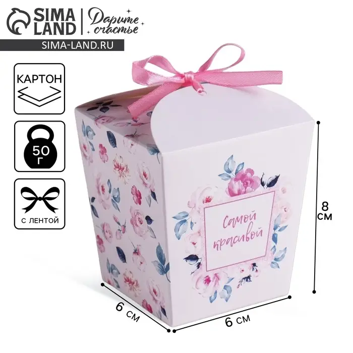 Коробка бонбоньерка, упаковка подарочная, «Самой красивой», 8 х 7.5 х 6 см см