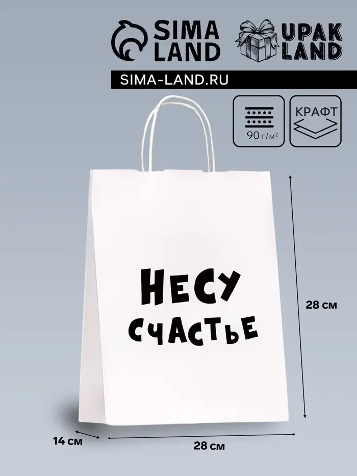 Счастье в красивой упаковке! Крафт-пакет «Несу счастье» (24×28 см) — стильная упаковка, которая превращает обычный подарок в тёплое поздравление. Лаконичный дизайн с трогательной надписью создаёт праздничное настроение.