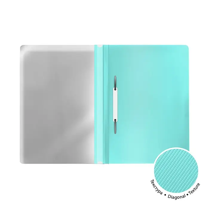Папка-скоросшиватель с перфорацией пластиковая формата А4 из высококачественного пластика с текстурой поверхности "диагональ", на которой не видно отпечатков пальцев и мелких царапин. Предназначена для быстрого сшивания, хранения и просмотра документов. Цвет папки – ассорти: голубой, мятный, розовый, фиолетовый. Механизм - механический скоросшиватель; прозрачный верхний лист; усиленный пластиковый корешок с прозрачной полосой для информационной карточки Папка вмещает до 130 бумажных листов. Размер - 312х230 мм, толщина верхнего листа - 0.12 мм, толщина - 0.18 мм. Код и штрих-код на каждой единице товара.