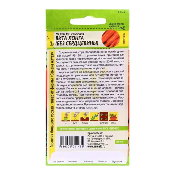 Семена Морковь "Вита Лонга" без сердцевины, урожайный, лежкий сорт, цп, 2 г