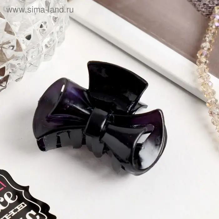 Крабик для волос «Глянец», закрученный бантик, 4 см, чёрный