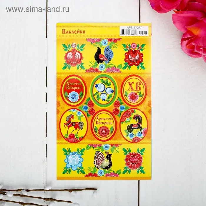 Наклейки пасхальные «Городец» с глиттером