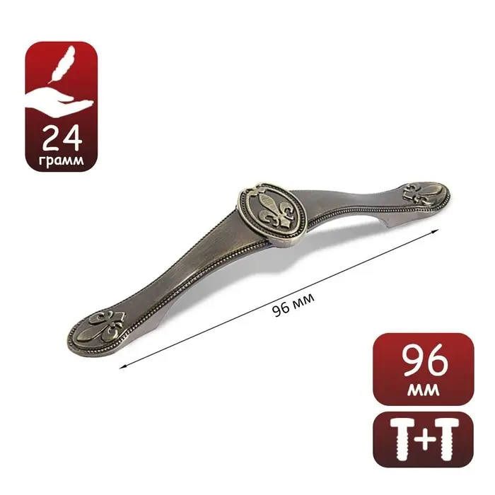 Мебельная ручка фиксируется к поверхности с помощью винтов.