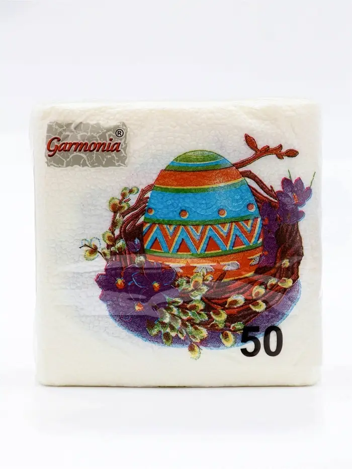 Пасхальные сервировочные бумажные салфетки Гармония цвета с рисунком «Пасхальные» - это отличное украшение для вашего праздничного стола. Идеально подойдут как для сервировки, так и в качестве декора и украшения в домашних условиях или на больших мероприятиях. Праздничные салфетки с пасхальным рисунком будут хорошим подарком для родных и близких. Данные салфетки можно использовать так же для декупажа и коллажей.