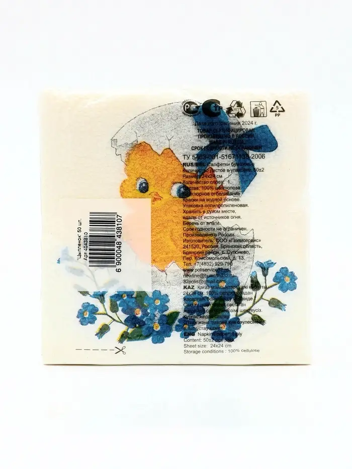 Салфетки бумажные пасхальные «Цыплёнок», 1 слой, 24×24 см, 50 шт.
