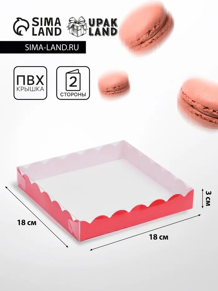Коробочка для печенья с PVC крышкой, красная, 18×18×3 см