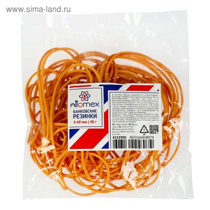 Резинки банковские "Attomex" диаметр 60 мм, 50 г, натуральный цвет.