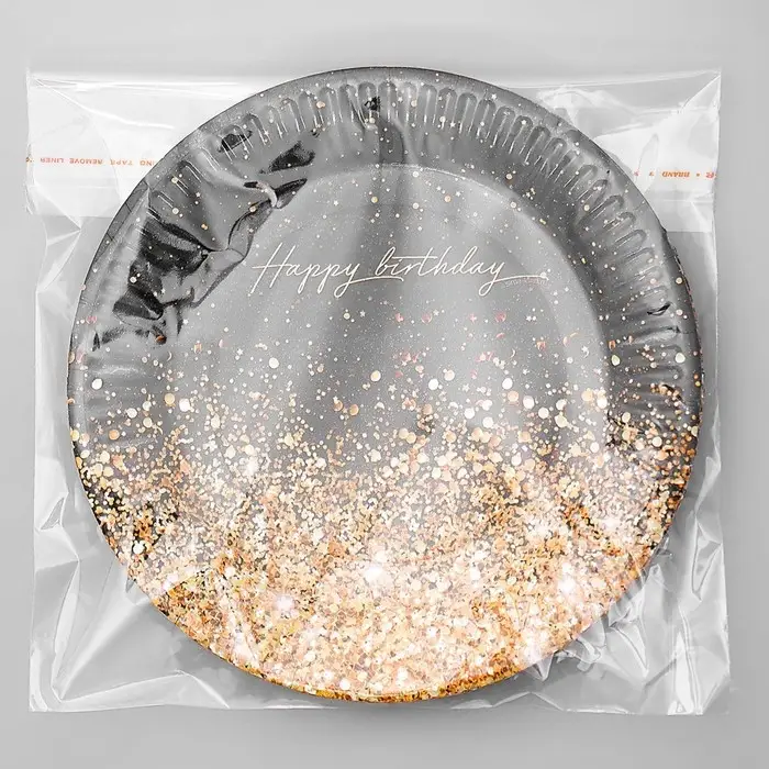 Тарелка бумажная «С днём рождения. Золотой звездопад», 18 см, набор 6 шт.