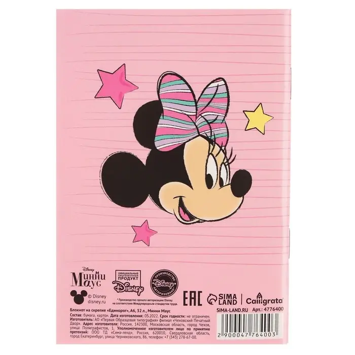 Блокнот А6 32 л на скрепке «Минни Маус», Единорог