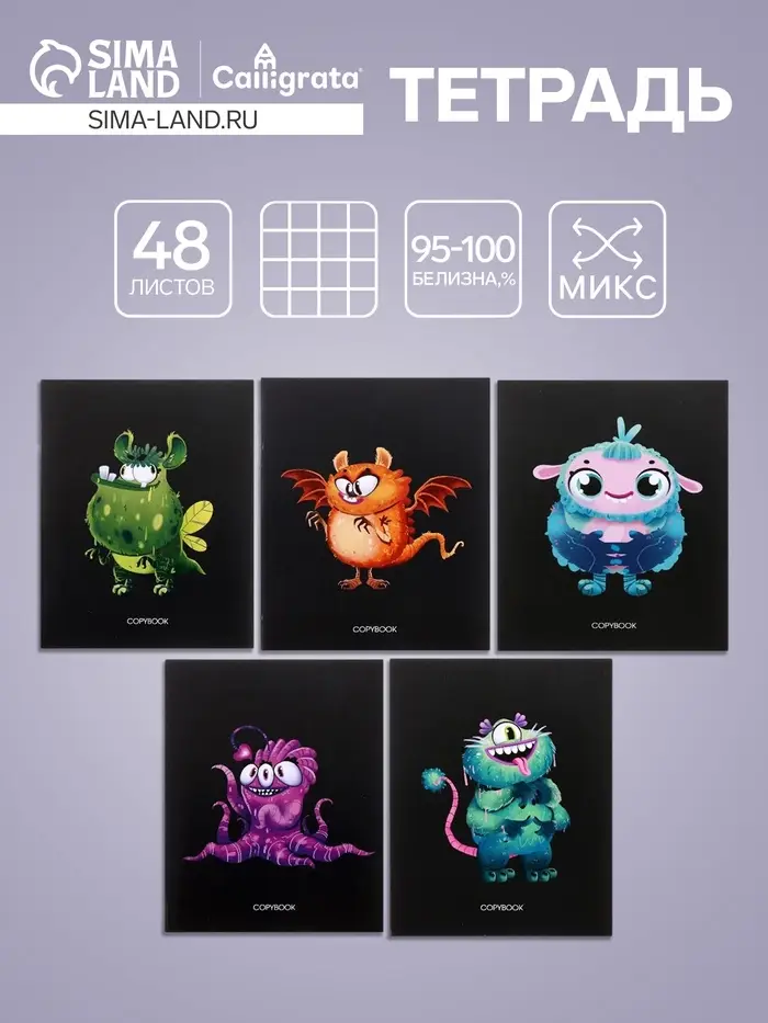 Тетрадь 48 листов в клетку, Calligrata «Инопланетные друзья», обложка мелованный картон, МИКС