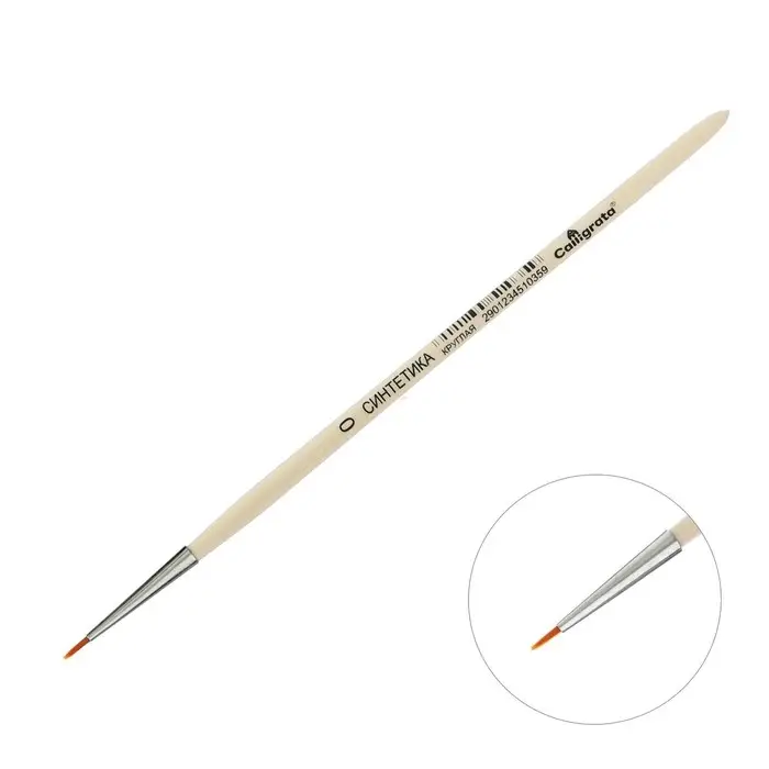 Кисть для рисования, Синтетика Круглая №0 (диаметр обоймы 1 мм; длина волоса 5 мм), деревянная ручка, Calligrata