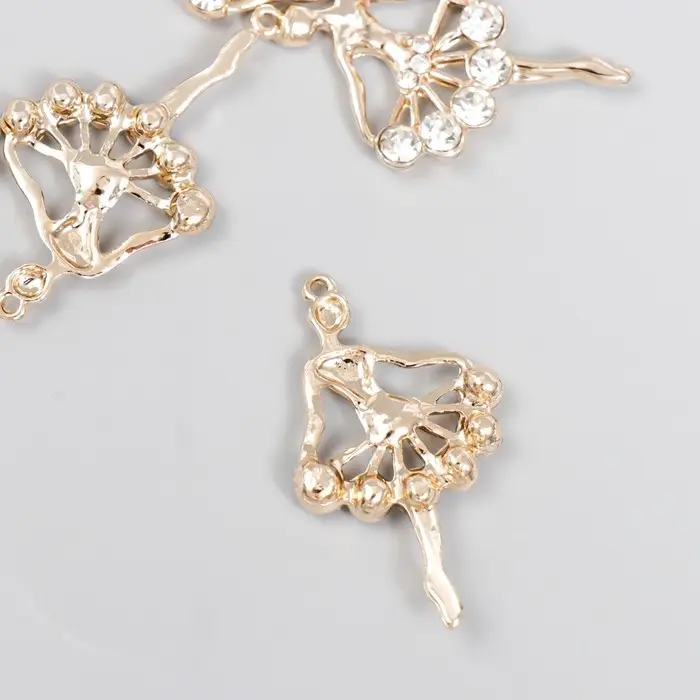 Декор для творчества металл, стразы "Балерина" золото 3,4х2,2 см