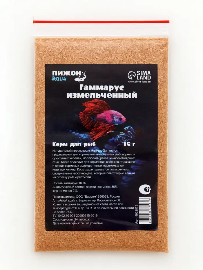 Натуральный пресноводный рачок Gammarus предназначен для кормления аквариумных рыб, водных и сухопутных черепах, моллюсков, раков, насекомоядных птиц. Также подходит для кормления сверчков, тараканов и других кормовых и декоративных насекомых как источник хитина.