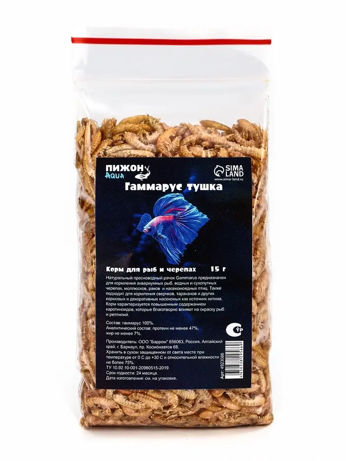 Корм для рыб и черепах "Пижон" гаммарус тушка, 15 г