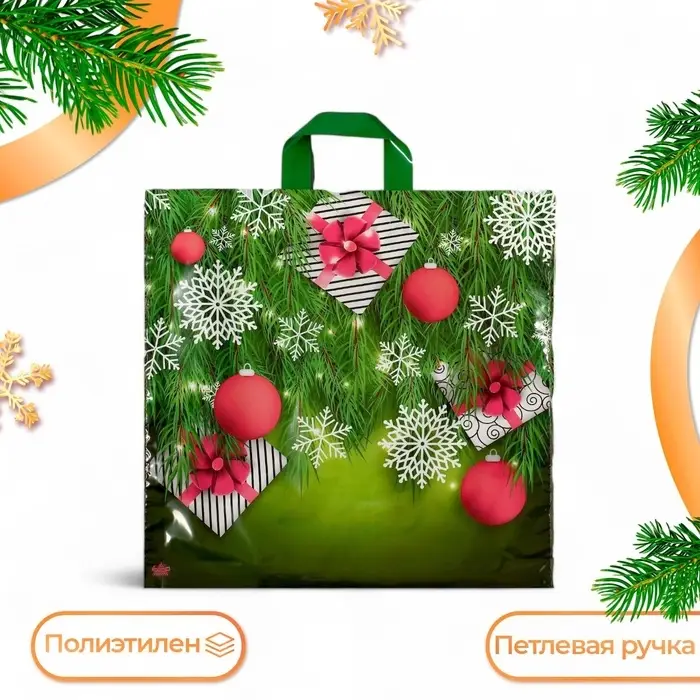 Пакет «Подарки в елках», полиэтиленовый с петлевой ручкой, 42×44 см