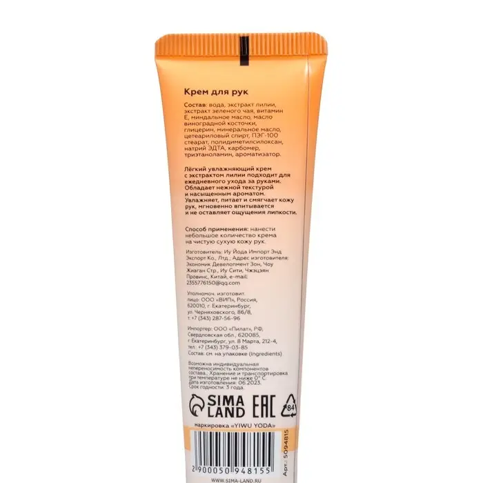 Применение: нанести небольшое количество крема на чистую сухую кожу рук.