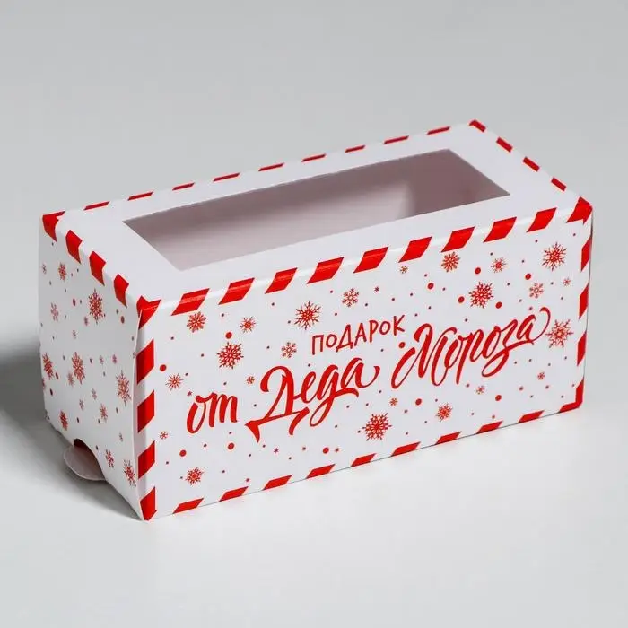 Коробочка для макарун «Новогодняя посылка» 12 х 5,5 х 5,5 см.
