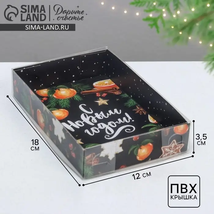 Коробка для кондитерских изделий «Новогодняя», 18 х 12 х 3.5 см