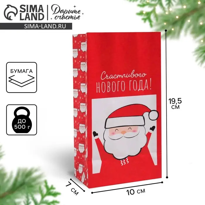 Пакет без ручек «Счастливого Нового Года!», 10 х 19.3 х 7 см