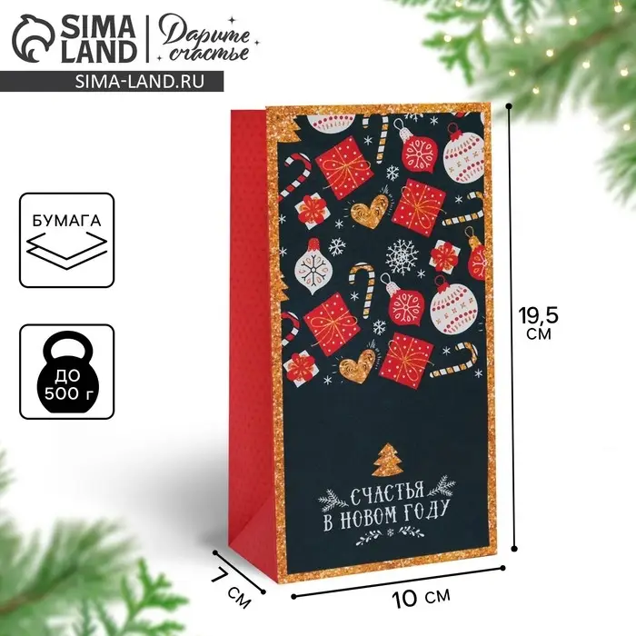 Пакет без ручек «Счастья в Новом Году», 10 х 19.3 х 7 см