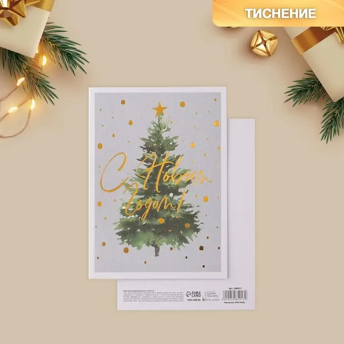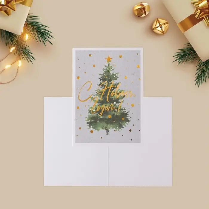 Открытка с новым годом на акварельном картоне «Елочка», тиснение, 11,8 х 16,4 см