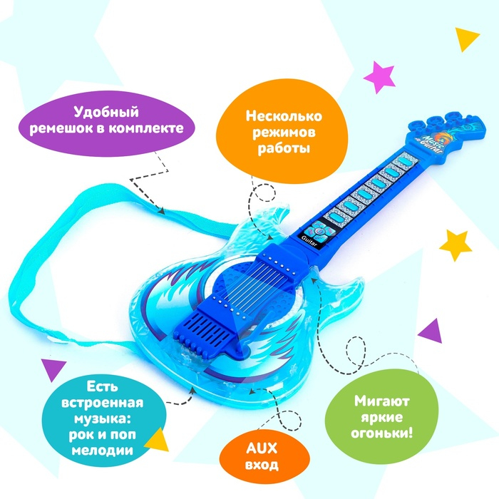 Музыкальная гитара «Рок-звезда», звук свет, цвет синий