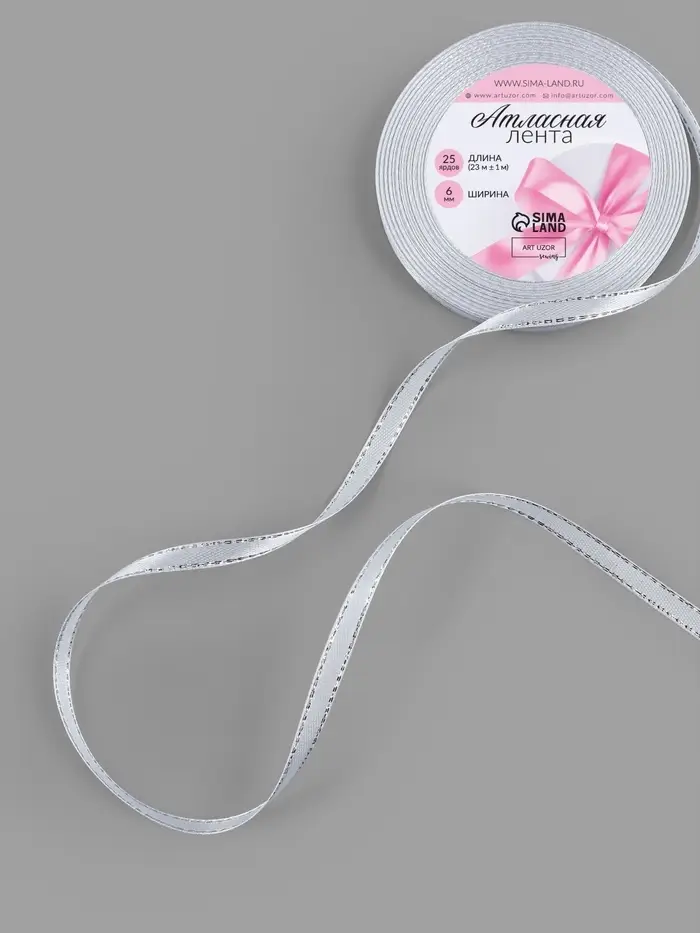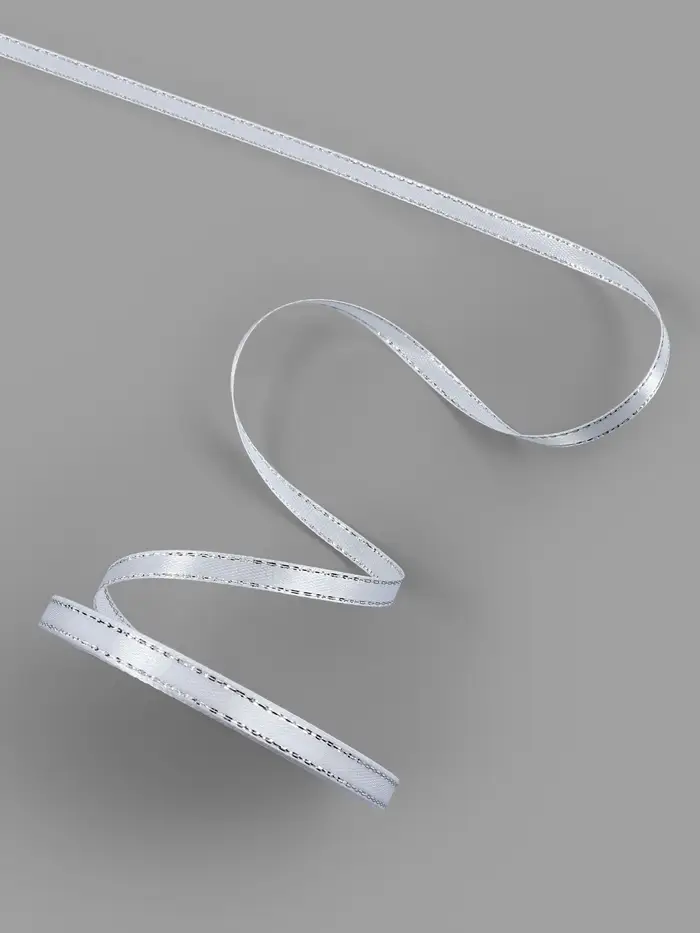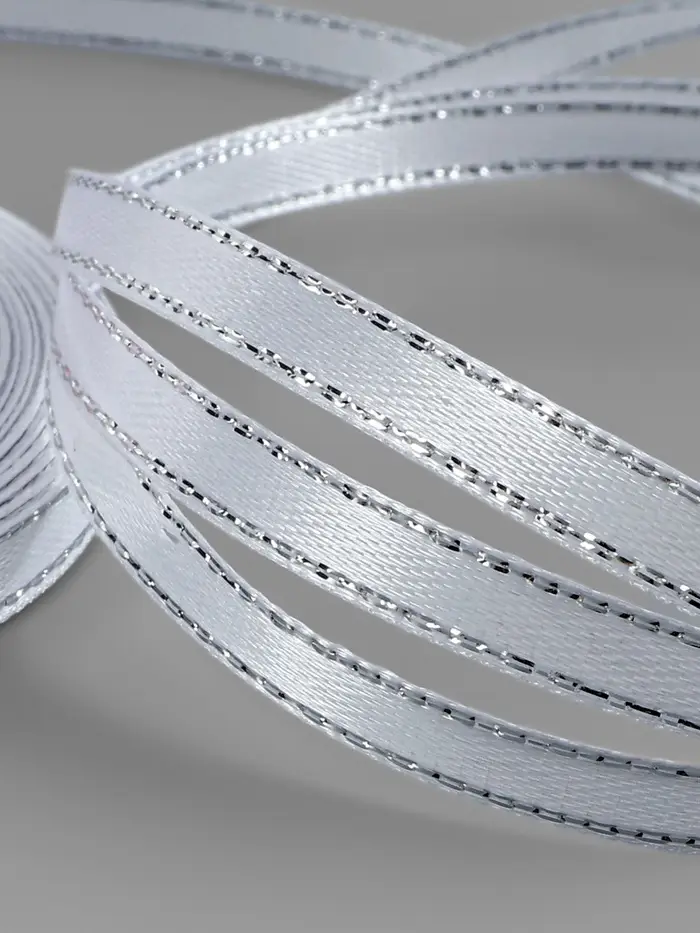 Лента атласная, с серебряным люрексом, 6 мм, 23±1 м, белая №001