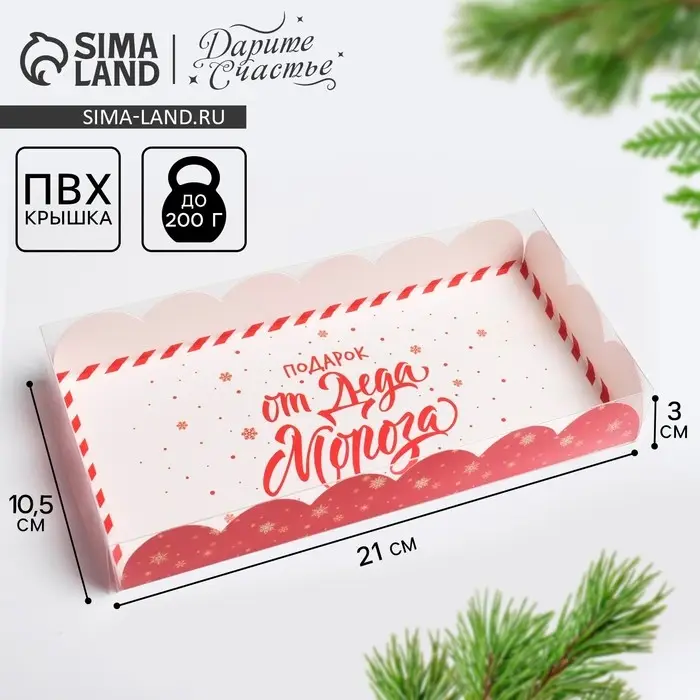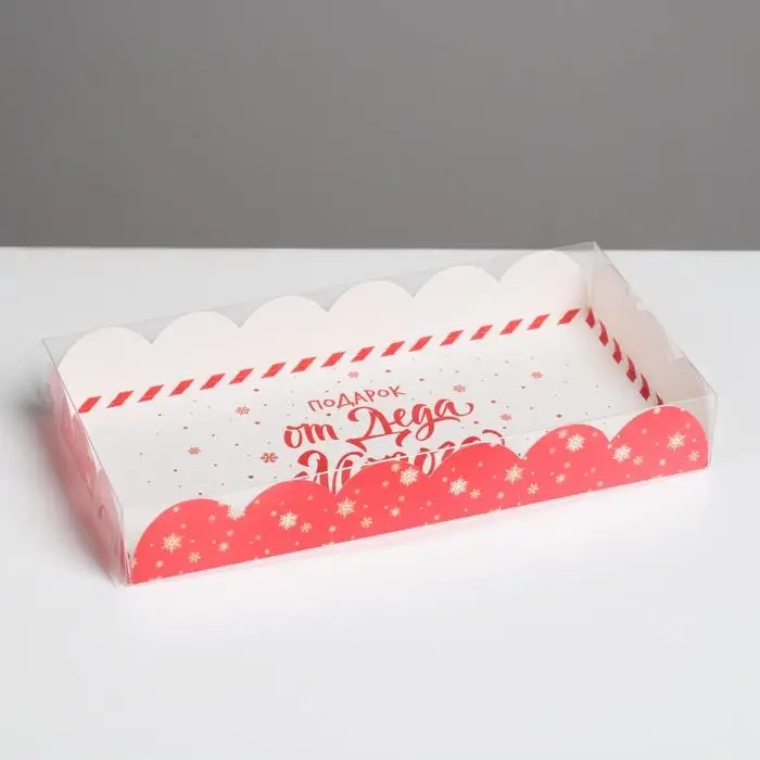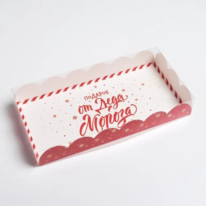 Коробка для кондитерских изделий с пластиковой крышкой «Подарок от Деда Мороза», 10.5 х 21 х 3 см