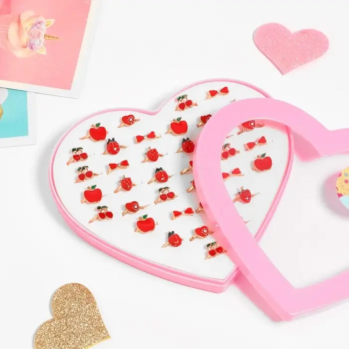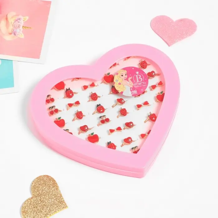 Кольцо детское «Ассорти» в сердце, форма МИКС, цвет красный в золоте, безразмерное