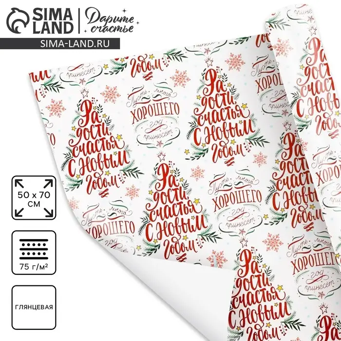 Упаковочная бумага глянцевая «Радости в Новом году», 50×70 см