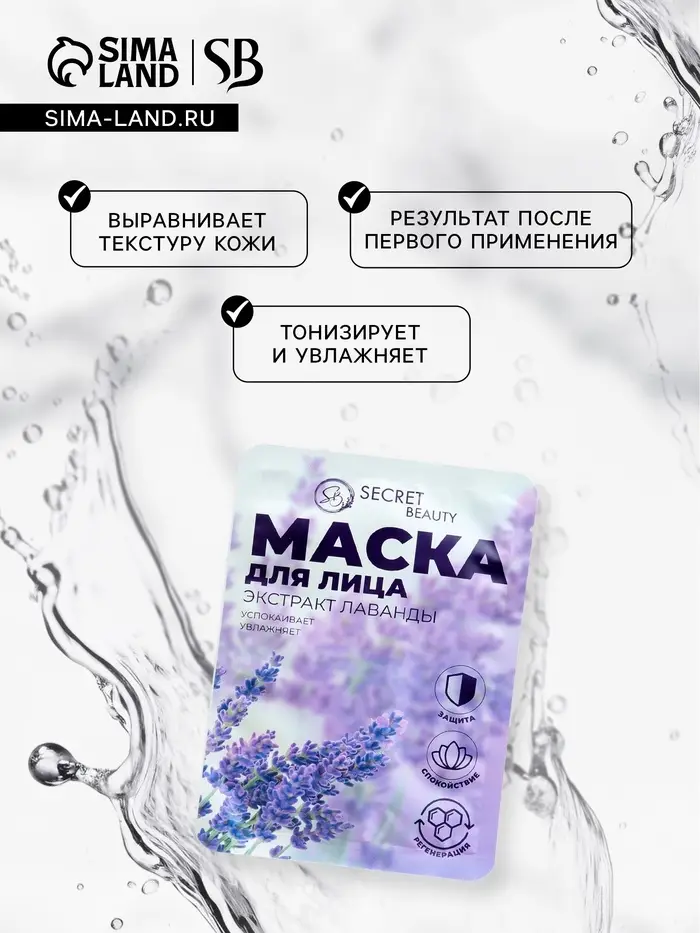 Маска тканевая увлажняющая для лица «Secret Beauty» с экстрактом лаванды